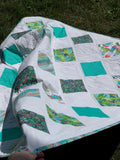This quilt top goes together quickly, and its easily customizable. Want it a little larger? Add more diamonds. Want it framed? Add a large outer border!