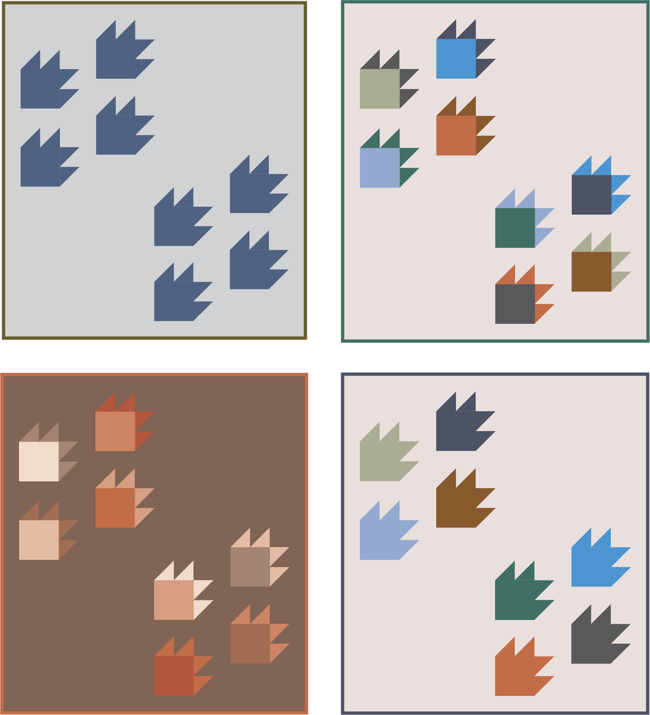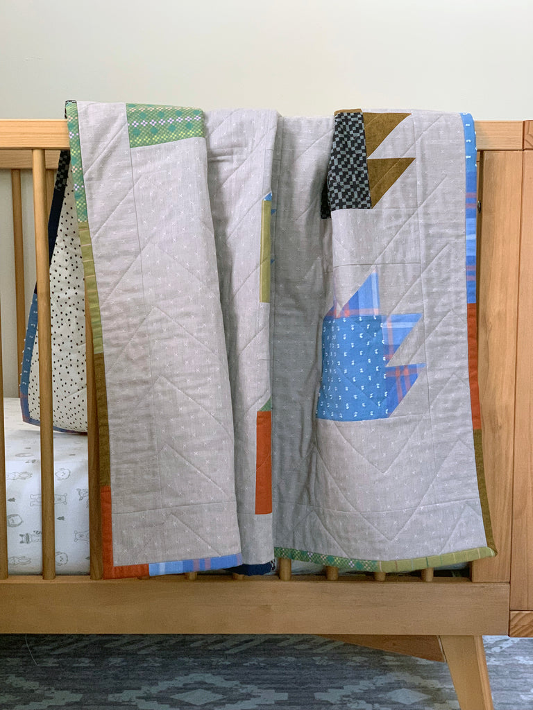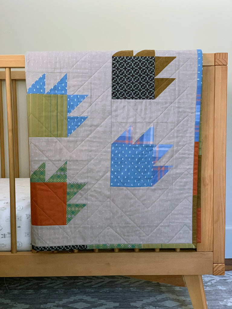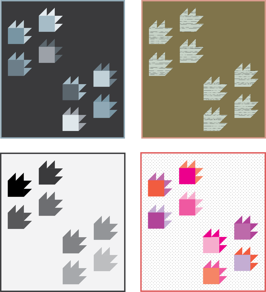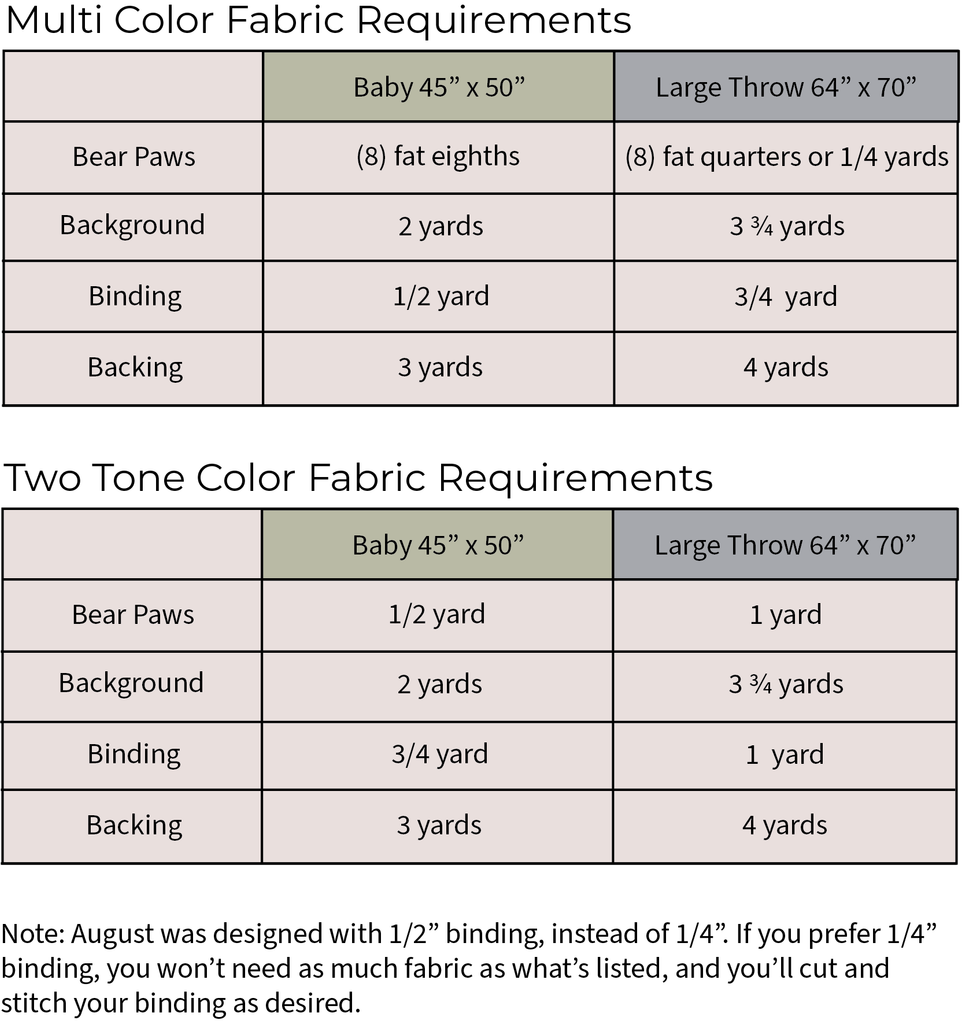 August is a bear paw quilt pattern with a unique layout. The pattern comes with two size options: Baby 45" x 50" and Large Throw 64" x 70", with three color options for each size. Choose from "Mix + Match", "One Color Block" or "Two Toned"!